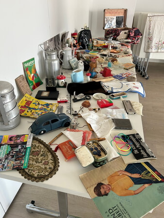 Claudia Scheller erklärte den Gästen bei einer Tasse Kaffee das Konzept des Nachmittags. Nach einer ausführlichen Vorstellungsrunde zeigte sie uns auf zwei Extra-Tischen ihre Schätze, die sie in ihrem Leben zusammengetragen hat. Da kamen Erinnerungen hoch, man konnte sich fast nicht losreißen von diesen Gegenständen und kam schon ins Gespräch!