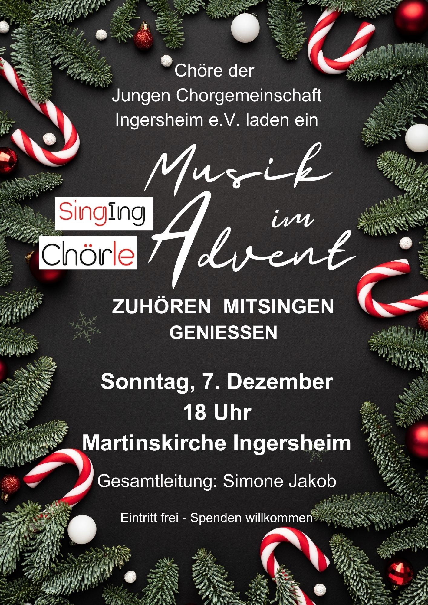 Die Chöre SingIng und Chörle der Jungen Chorgemeinschaft Ingersheim e.V. unter der Leitung von Simone Jakob, laden sie zum Zuhören, Mitsingen und Geniesen ein.