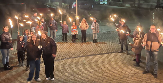 Am Montag vor den Weihnachtsferien traf sich die Jugend des Akkordeonvereins Ingersheim um 17:30 Uhr an der Fischerwörth-Halle um gemeinsam die Ferien einzuläuten. Jeder bekam eine Fackel und nachdem alle angezündet waren, ging unsere kleine Fackelwanderung schon los: Der Weg führte entlang des Wiesentals, dann am Rathaus vorbei und schließlich zurück zur Fischerwörth-Halle. Zwischendurch gab es noch eine Weihnachtsgeschichte zu hören. Im Anschluss erfreute man sich an Kinderpunsch und Lebkuchen. Alle freuten sich schon sehr auf Weihnachten und jeder hatte Spaß. Um 19:00 Uhr verabschiedeten sich alle ins neue Jahr.