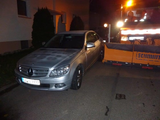 Ein weiteres großes Problem stellt das Parken in Kurven- und Kreuzungsbereichen für unsere Winterdienstfahrzeuge dar. Wer sein Auto in diesen Bereichen abstellt, läuft Gefahr, dass diese insbesondere bei Schnee und Glätte nicht nur ein Hindernis für den Schneepflug, sondern auch für andere Verkehrsteilnehmer darstellen. Wenn sich der Bremsweg bei Glätte verlängert, passiert es schon mal, dass man in Kurven- und Kreuzungsbereichen auf ein abgestelltes Fahrzeug rutscht. Außerdem kann der Winterdienst potentielle Gefahrenstellen an Kreuzungen und in unübersichtlichen Kurven dann nicht räumen und streuen.