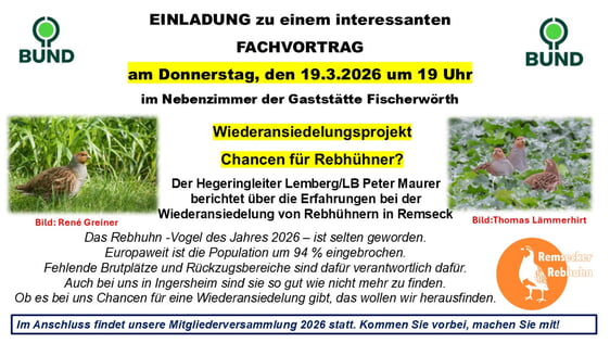 Wir freuen uns auf viele interessierte Rebhuhnfreunde und sind auf die Chancen gespannt.
