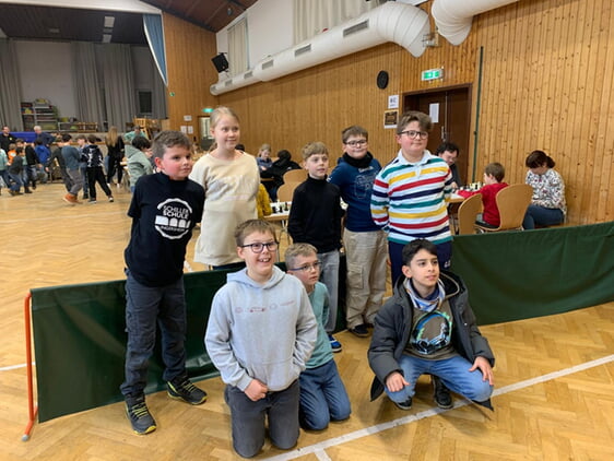 Zwei Mannschaften der Schach-AG starteten bei der diesjährigen Schulschach-Bezirksmeisterschaft der Grundschulen im Bezirk Ludwigsburg/Rems-Murr und belegten die Plätze 21 und 25. Bei beiden Mannschaften aus Ingersheim ging nur um die Teilnahme am Turnier und Erfahrungen zu sammeln. Die Ingersheimer Mannschaften bestanden nur aus Spieler der aktuell laufenden Schach-AG mit Kindern, die erst das Schachspiel erlernt haben. Zum größten Teil waren es Kinder aus den Klassen 1 bis 3, die sich gut gegen teils ältere Gegner verkauft haben. Für die erste Mannschaft begann das Turnier sehr gut und nach einem Sieg und einem Unentschieden wurde die Mannschaft gegen stärkere Gegner gelost. In den folgenden Partien zeigte sich dann, dass dem Ingersheimer Team die notwendige Erfahrung fehlte. Mit den neuen Erkenntnissen können die meisten Kinder der beide Mannschaften wieder nächstes Jahr antreten und mit Sicherheit eine bessere Platzierung erreichen. Für Ingersheim spielten Jan C. (4,5 Punkte), Paul S. (2,5), Synar Q. (2,5), Maxim S. (1), Luke K. (0,5), Nikita D. (1), Veronica Y. (1,5) und Samu P. (2). Für alle Beteiligten ist dies vermutlich nicht die letzte Teilnahme, da nächstes Jahr wieder Schulschachmeisterschaften entweder der Grundschulen oder der weiterführenden Schulen anstehen.
