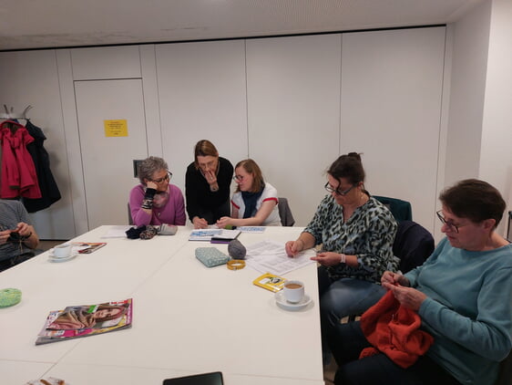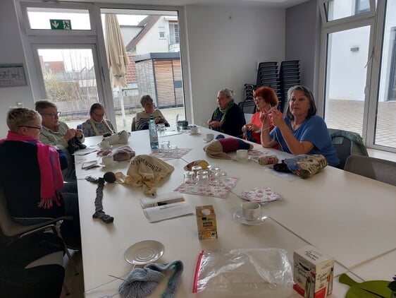 Wir treffen uns nun schon ein Jahr lang , einmal im Monat zum gemeinsamen Stricken. Von Anfang an wurde das Angebot fleißig angenommen. Der zweite Mittwoch im Monat ist fest eingeplant bei ca 20 Strickerinnen und jedes mal kommt jemand Neues dazu. Hobby verbindet. Es wird gefachsimpelt, Strickstücke bewundert, Wolle befühlt, Anleitungen getauscht und über ein schwieriges Stück hinweg geholfen. Eine richtig tolle Gemeinschaft ist entstanden und die Ideen gehen uns nicht aus.